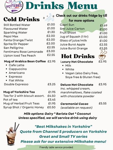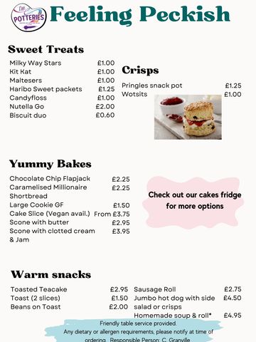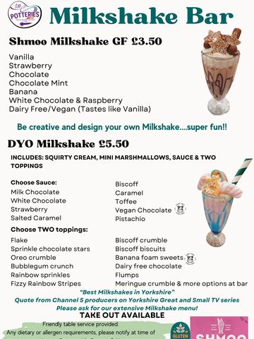 A great array of hot and cold drinks, including our amazing range of delicious shmoo milkshakes. Whether you would like a toasted teacake to a freshly oven baked jacket potato there is something for everyone, including our doggy friends - with dog friendly ice-cream!