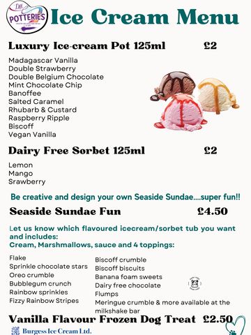 We have ice-cream, dairy free sorbets, vegan ice-cream & doggy icecream..